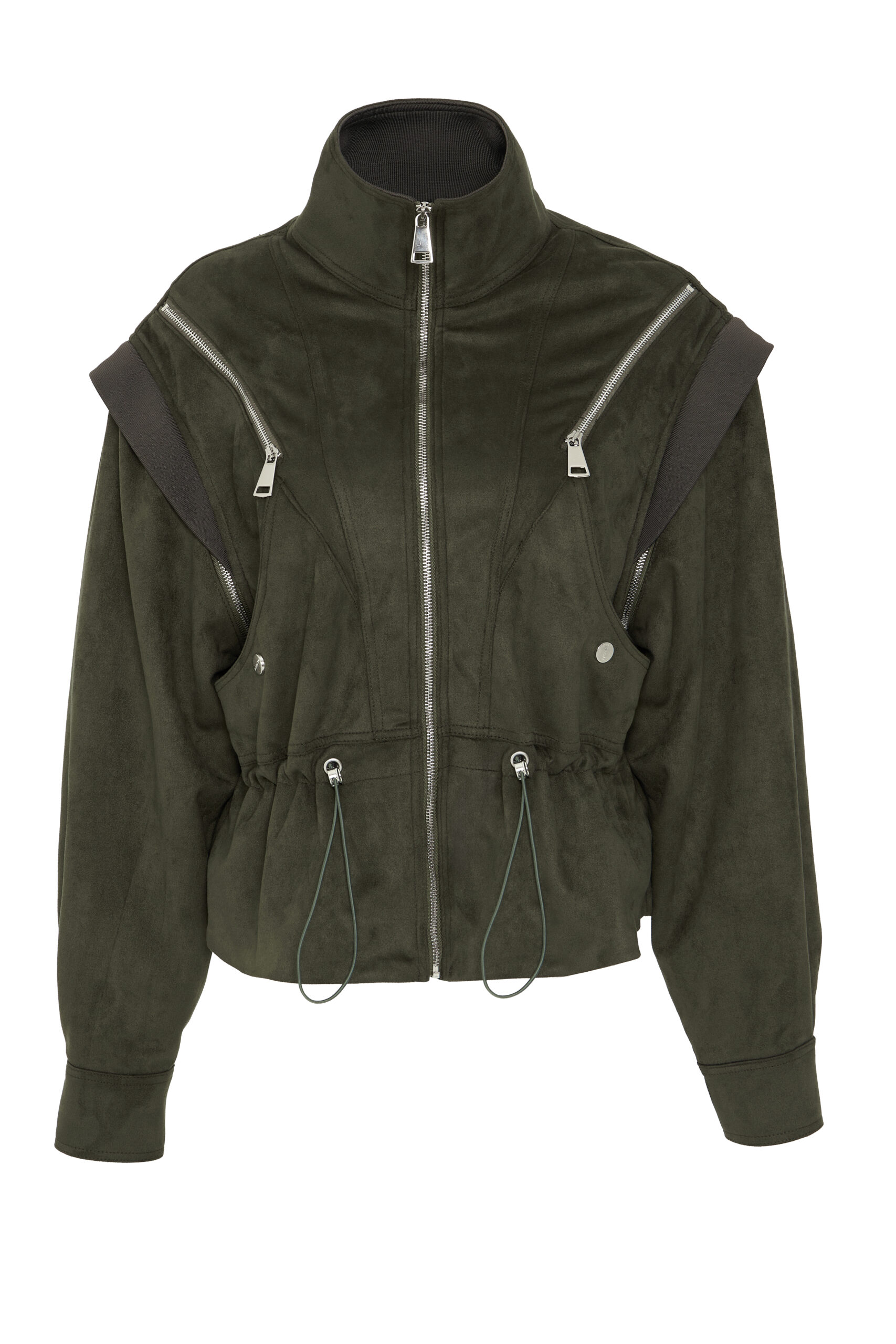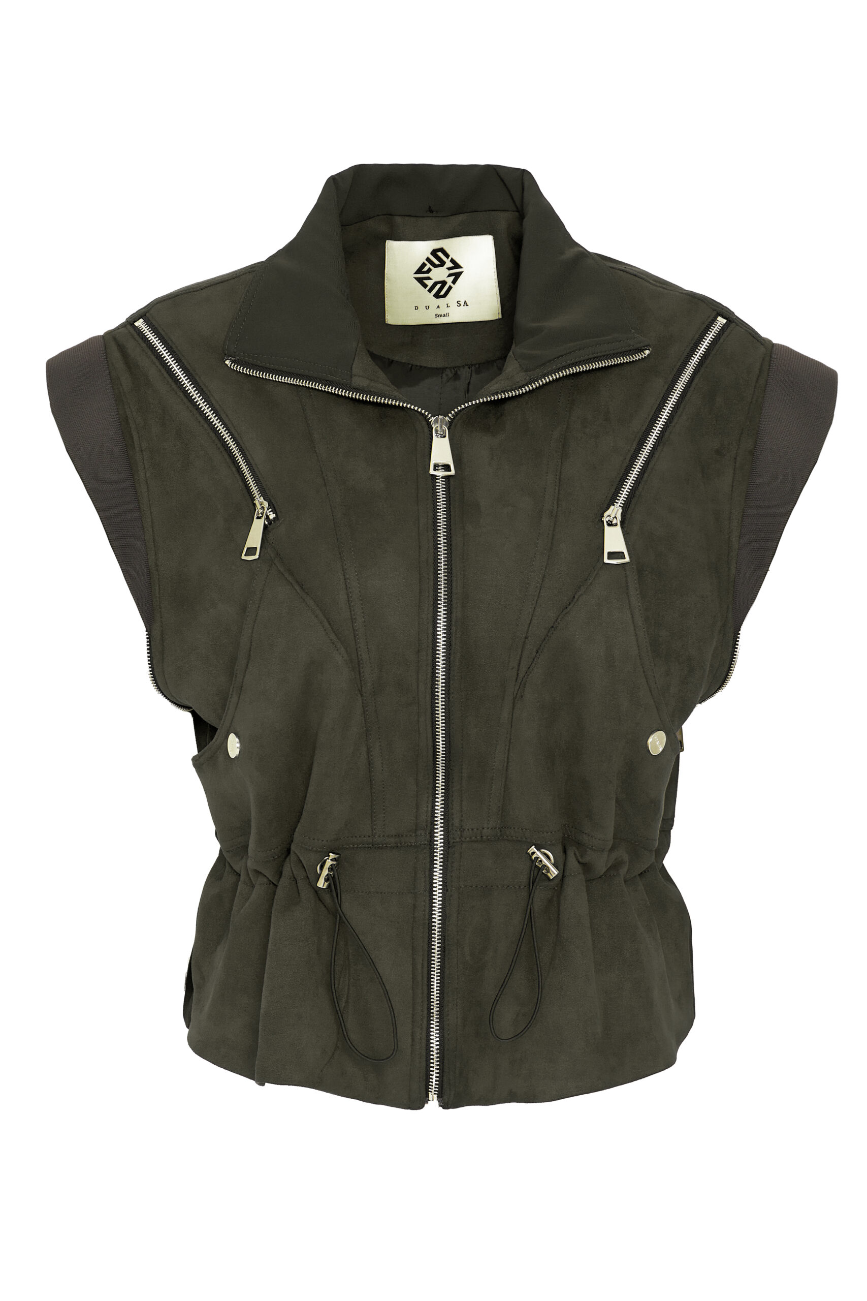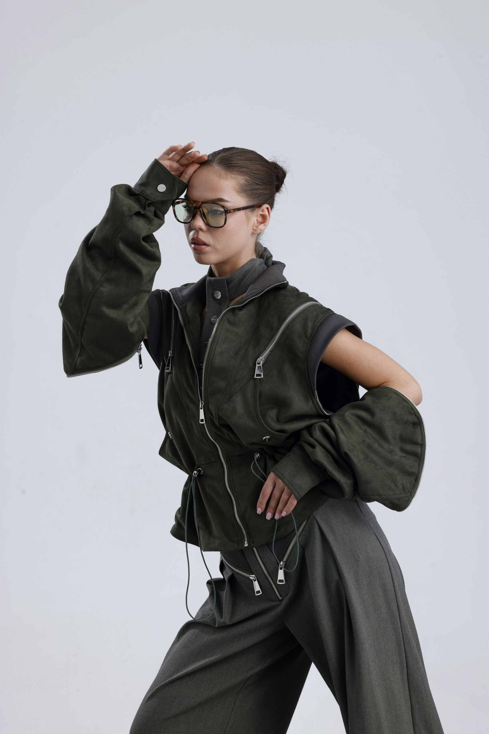 Fermuar kapalı,göğus zipperlı,kolar zipperla açılip yelek halindede kullanmaktadır