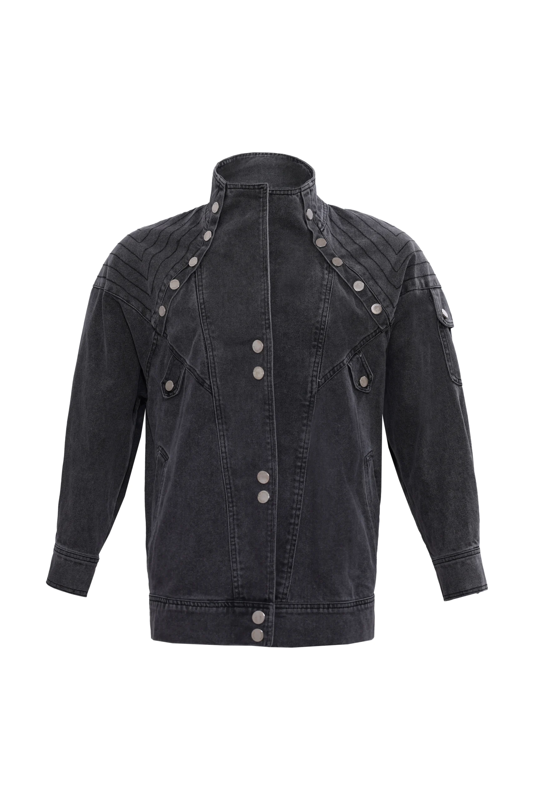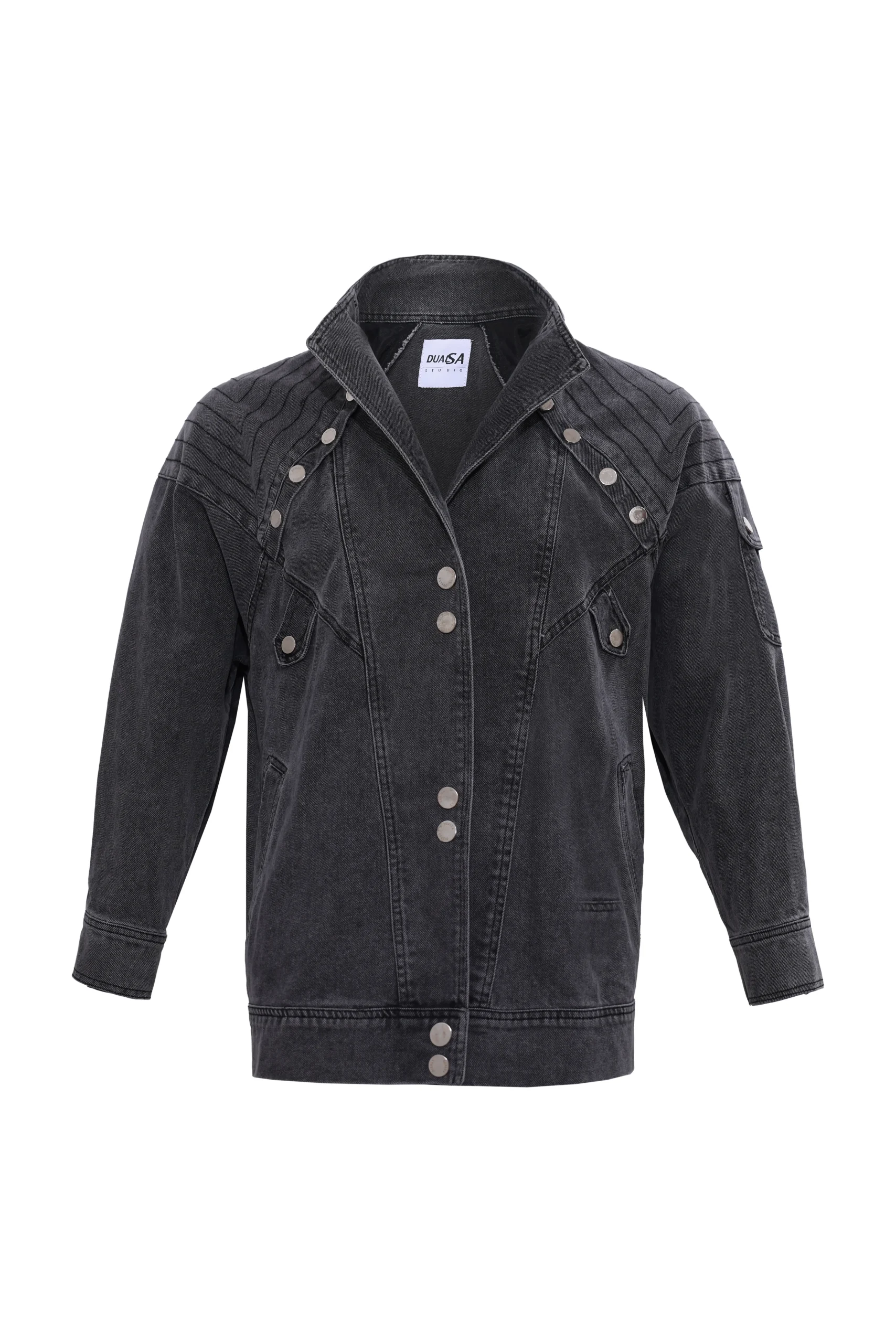 Denim shoulder stitch detail bust duğme detaylı düğme kapanma single flap side pocket yan cep sleeve flap pocket height ölçüsü:80 cm Model is wearing size S Model measurements: Size: 36 | height: 1.75 cm | gögüs: 85 | waist: 62 |hips:90