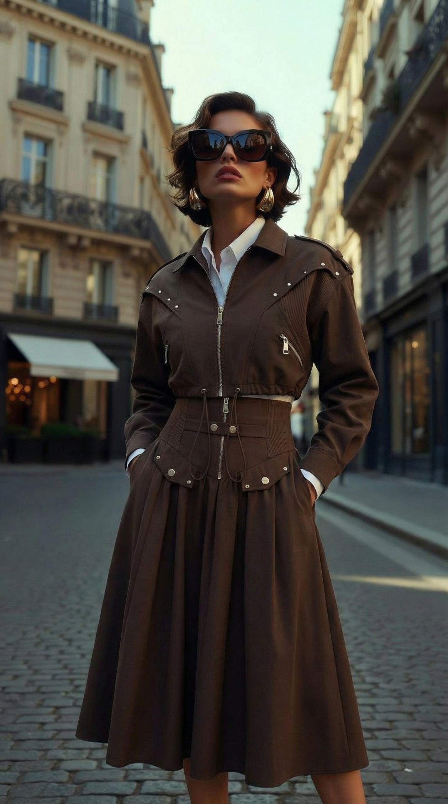 Zipper closure, bust and pocket details