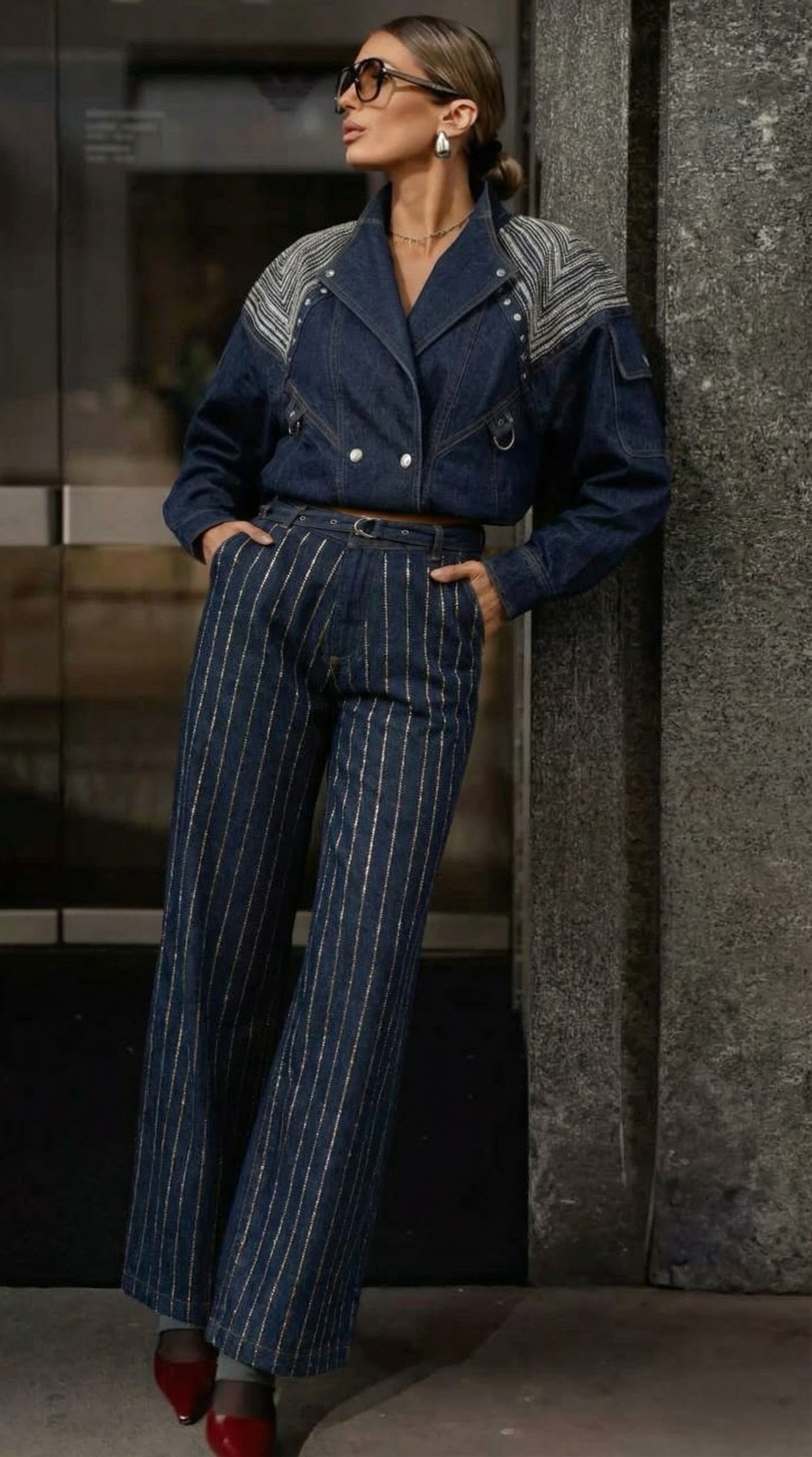 Trousers front waistband zipper ve stone details,loose fit Urün heightu:112 cm Model is wearing size S Model measurements: Size: 36 | height: 1.82 cm | gögüs: 85 | waist: 62 | hips: 90