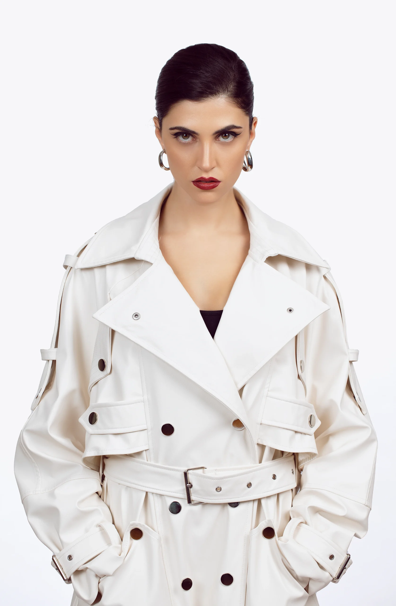Lined Allerli Düğme kapanma Omuz uzun apoletli Kol ucu apoletli Single flap breast pocket Yan cep torbalı Seyyar kemerli Arka yırtmaçlı Boy ölçüsü:119 cm Model is wearing size S Model measurements: Size: 36 | height: 1.75 cm | gögüs: 85 | waist: 62 |hips:90