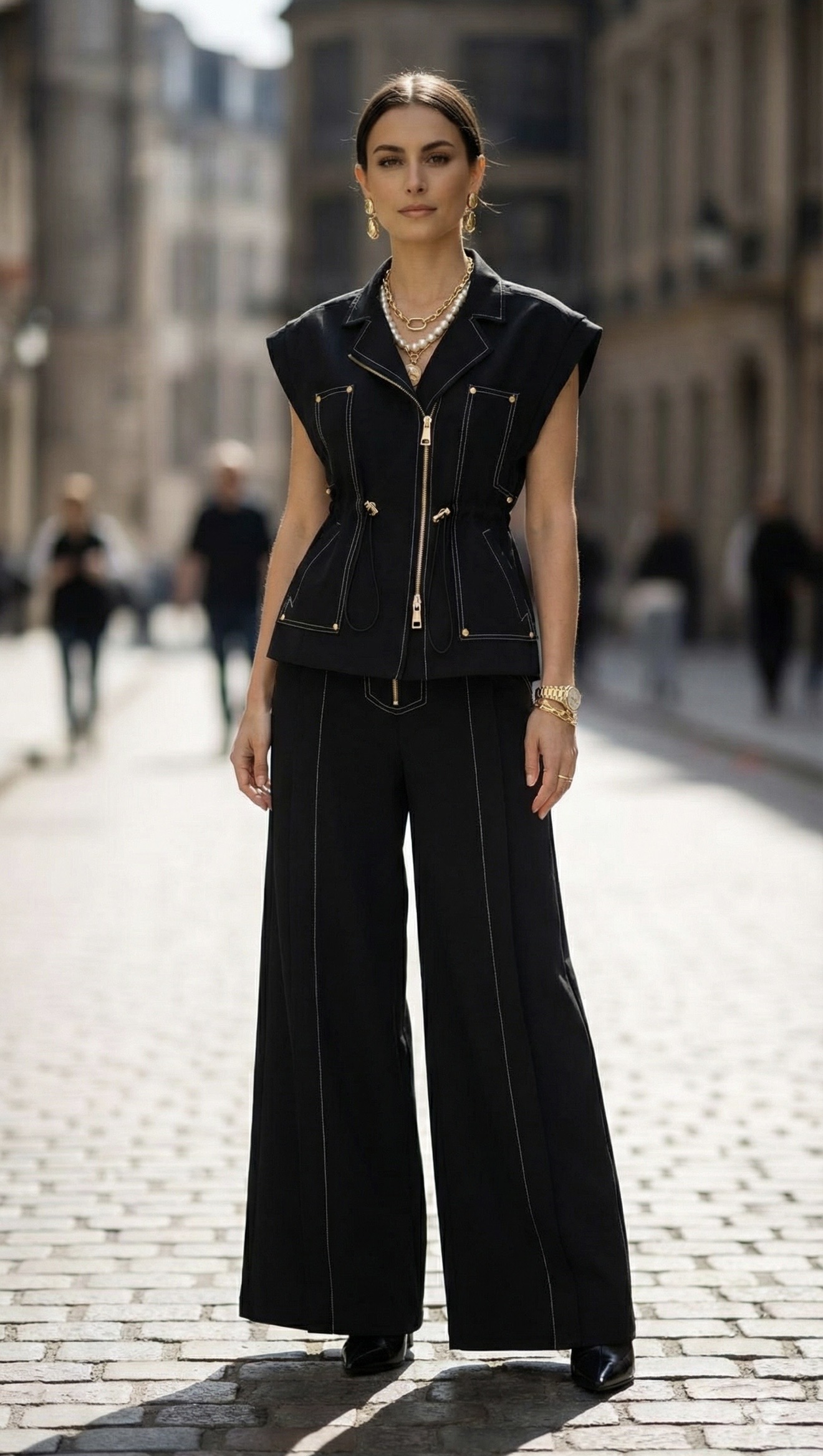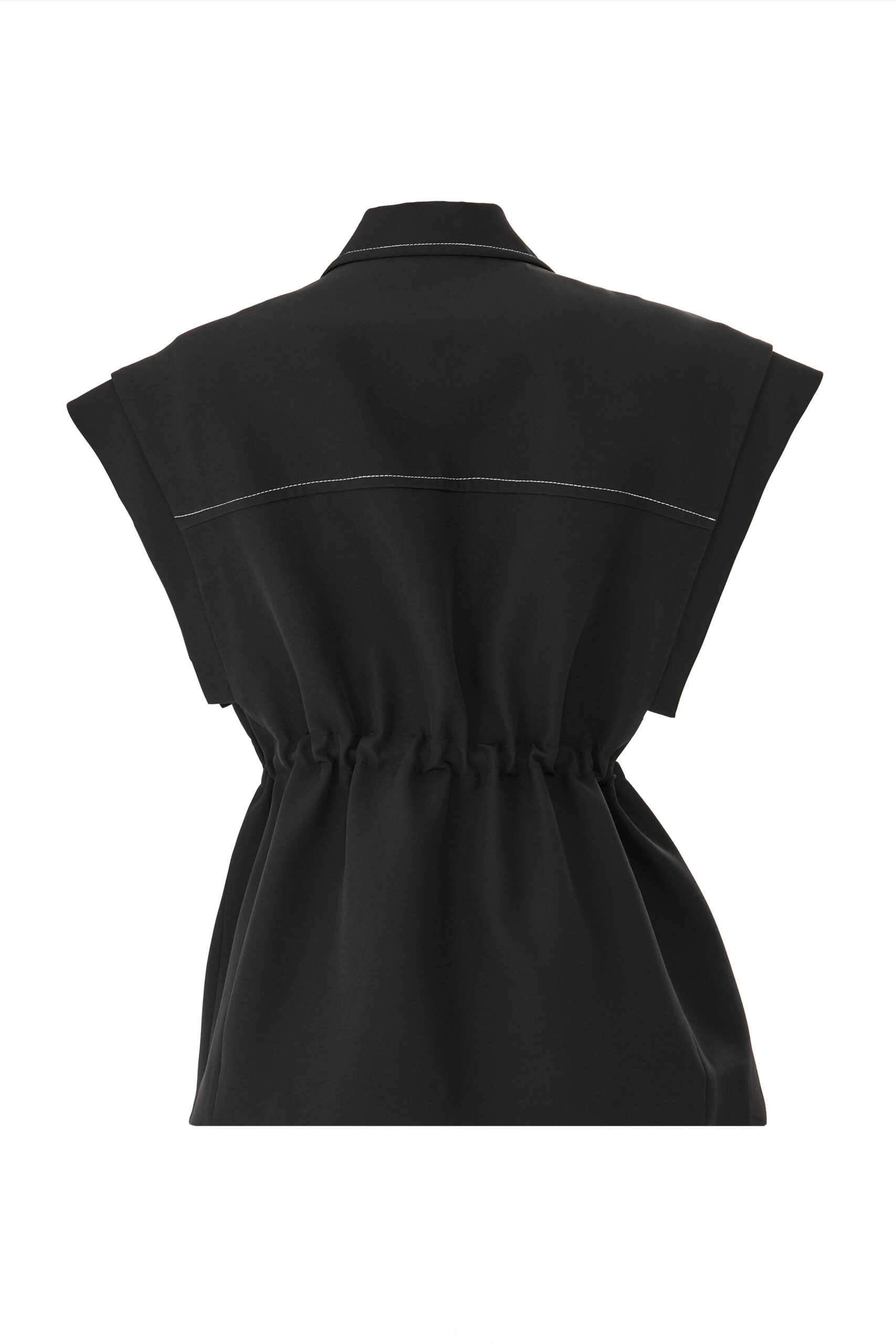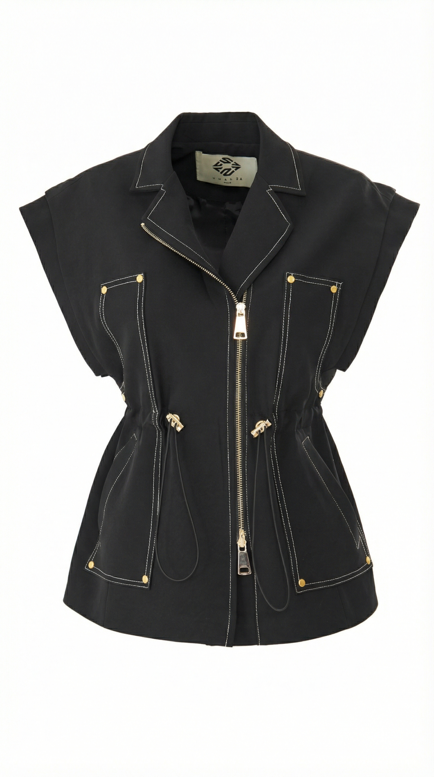 Voile lined, zipper closure, side pockets, chest pocket detail
